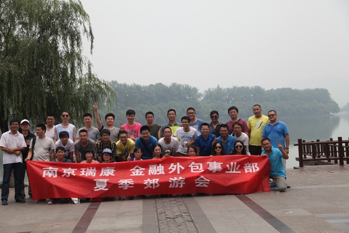 2014年6月7日,金融外包服務(wù)事業(yè)部相關(guān)部門組織在南京玄武湖以“迎青奧”為主題的環(huán)湖走活動,期間進行了拔河和跳繩競技比賽,評選出一二名次并發(fā)放獎金和獎品,賽后集體聚餐;顒釉鰪娏藴贤ê徒涣鳎訌娏藞F結(jié)和凝聚力,氣氛非;钴S,非常成功。